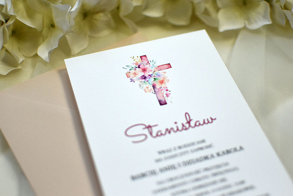 eleganckie zaproszenie komunijne lub na Chrzest Święty z krzyżem wzór Z9