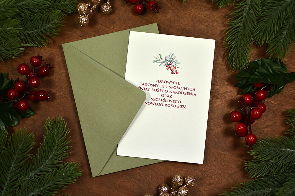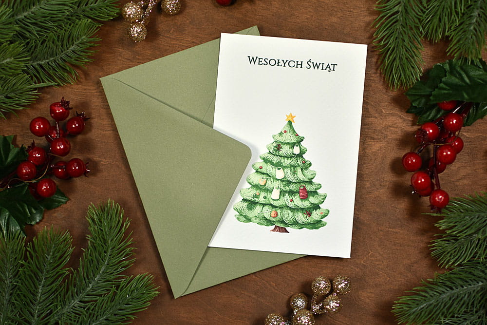Świąteczne kartki z logo dla Twoich klientów z różnymi bożonarodzeniowymi wzorami.