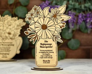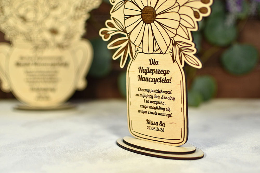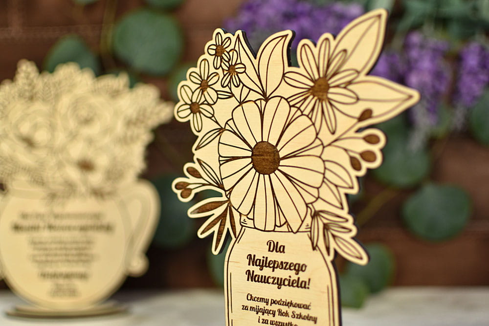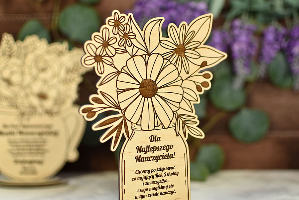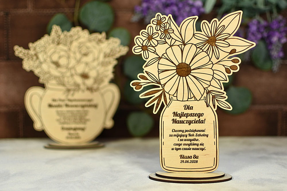 Zbliża się Dzień Babci i Dziadka, a może inna ważna data dla Twoich bliskich? Podaruj im niecodzienny upominek z Twoją dedykacją - drewniany bukiet kwiatów z wygrawerowanymi życzeniami. Te kwiaty na pewno nie zwiędną i będą fajną pamiątką na długie lata. Wygrawerowane teksty można dowolnie modyfikować - dla Babci, dla Dziadka, a także dla mamy na Dzień Matki czy dla nauczyciela na Dzień Nauczyciela lub zakończenie roku szkolnego.