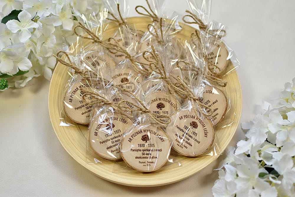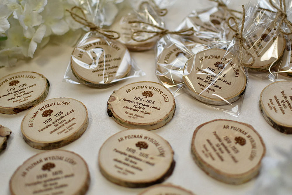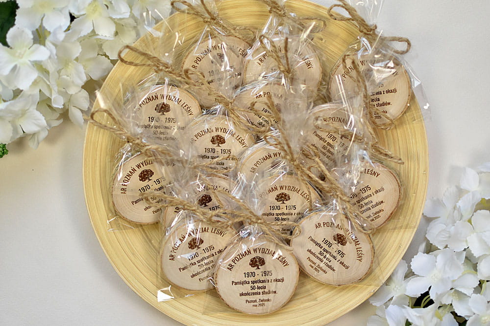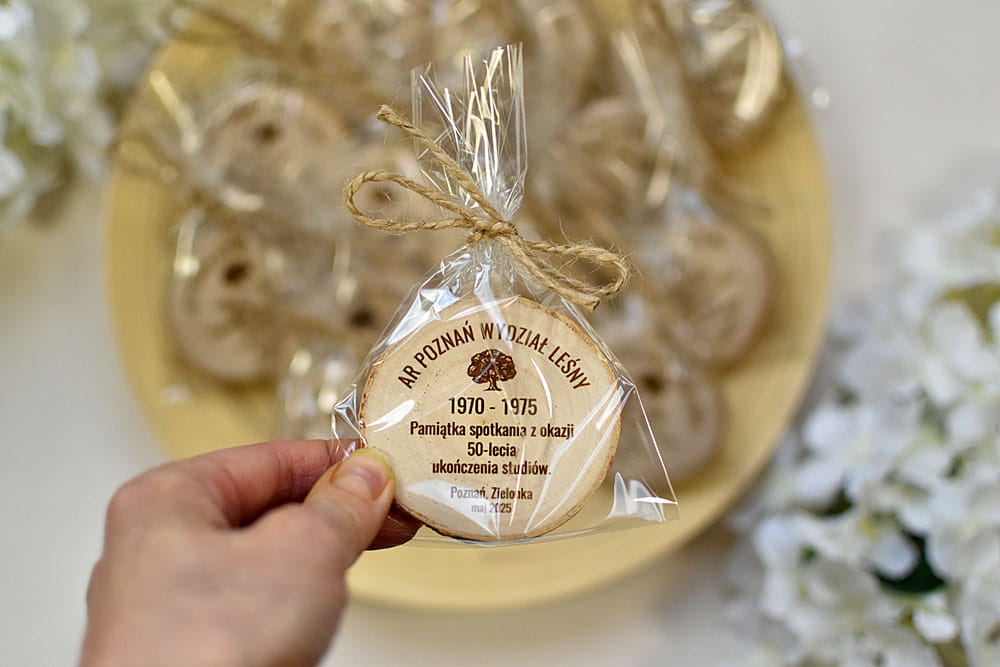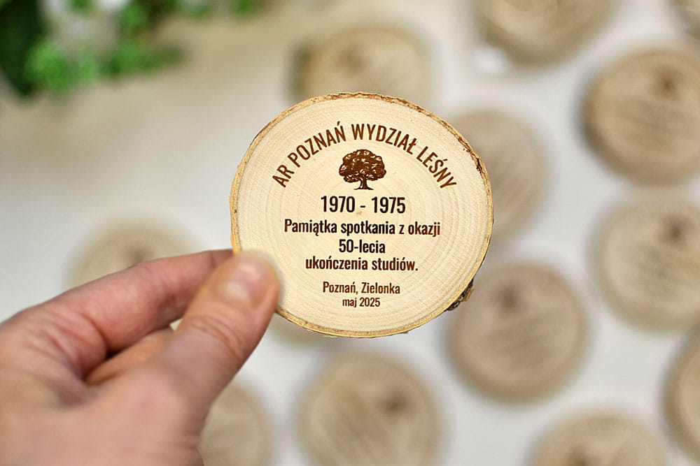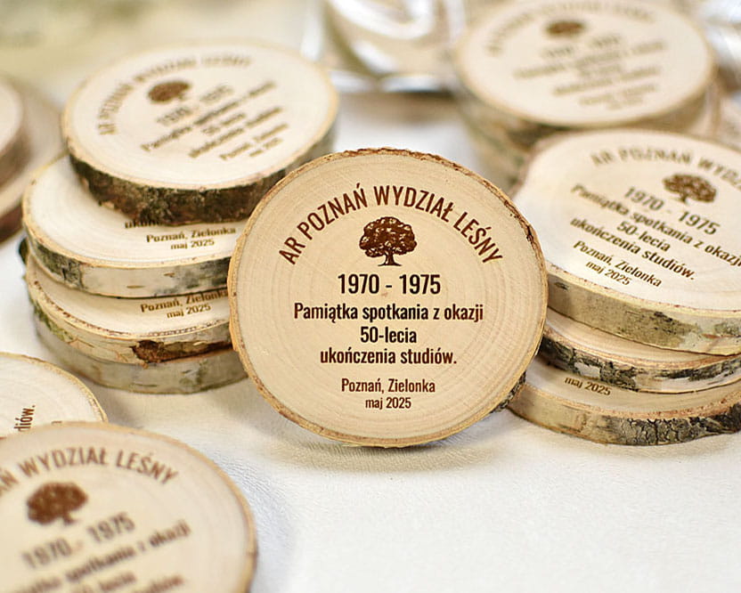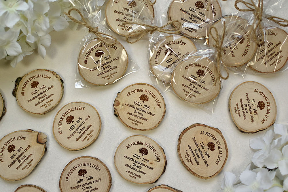 Oryginalny upominek z okazji zakończenia szkoły, jubileuszu, rocznicy - drewniany magnes na lodówkę z Waszym grawerem.