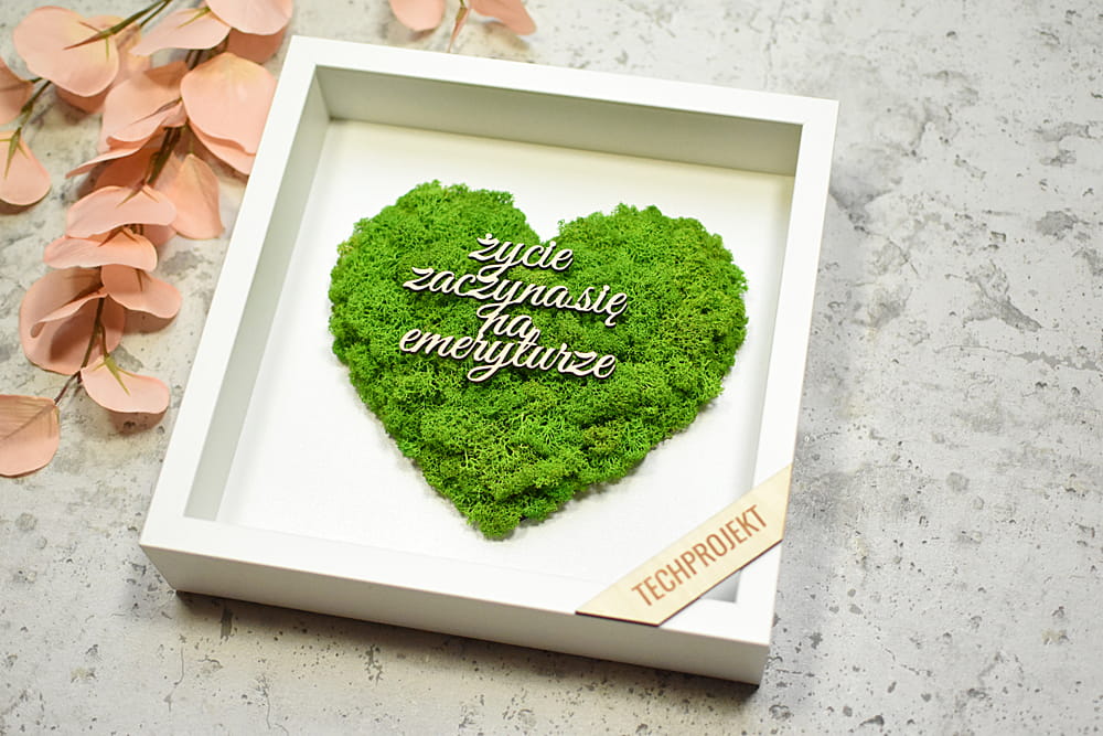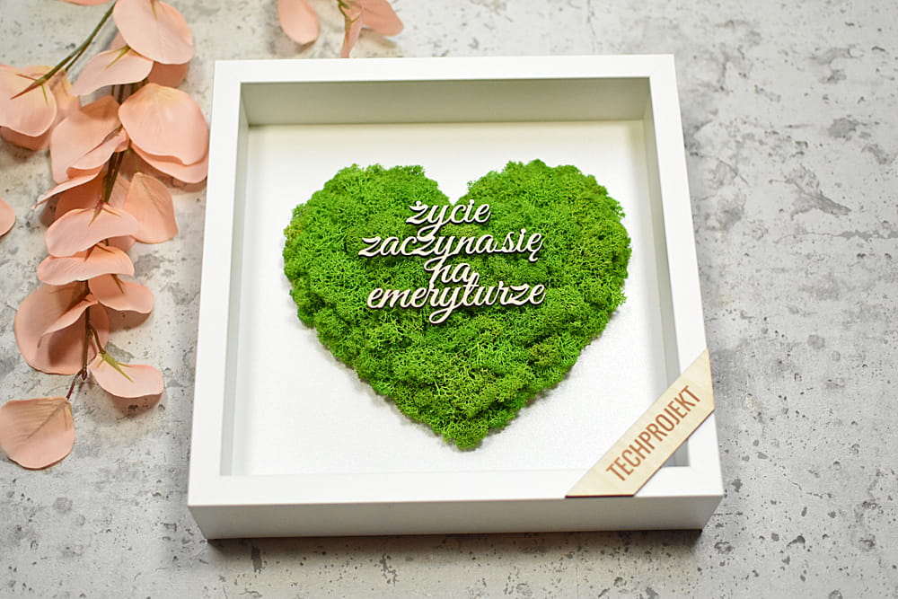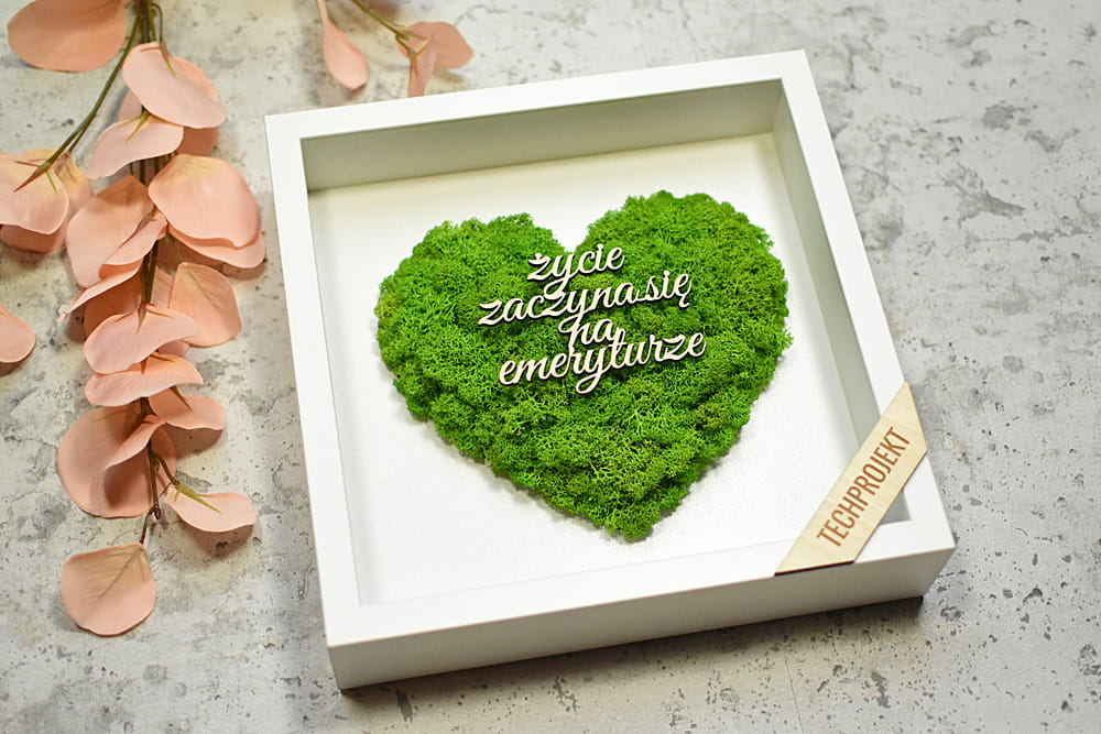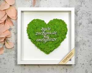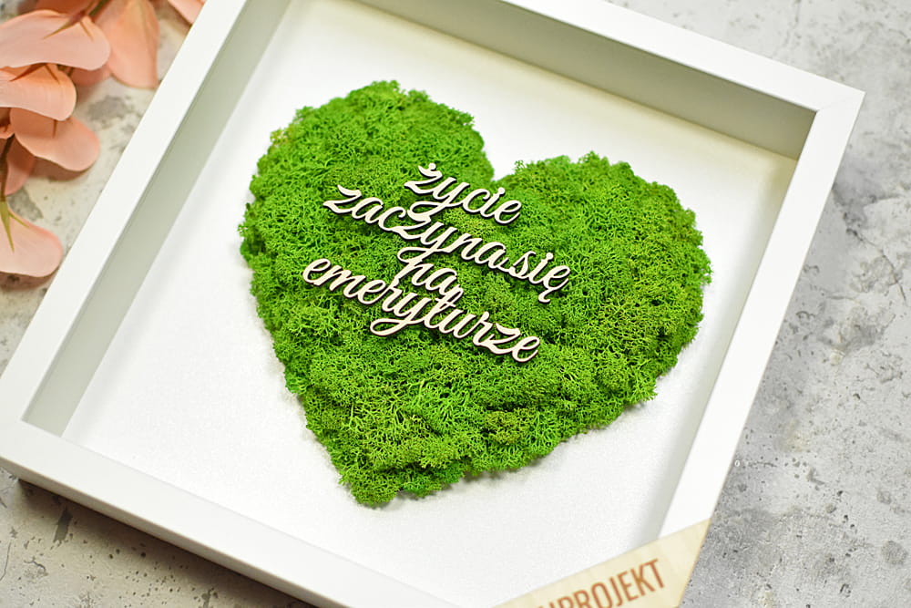 obraz z zielonego mchu z napisem, pamiątka dla emeryta, emerytki