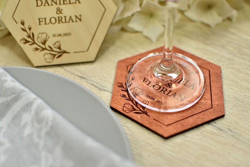 Oczaruj swoich gości wyjątkowym prezentem - personalizowaną podstawką pod filiżankę, kubek czy kieliszek. Na podstawce możesz umieścić dowolny tekst i dostosować ją do swojej uroczystości jak ślub, wesele, chrzest, komunia, jubileusz czy rocznica.