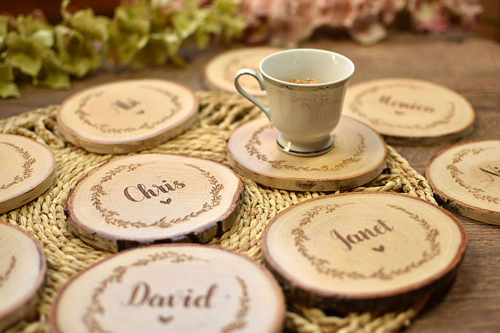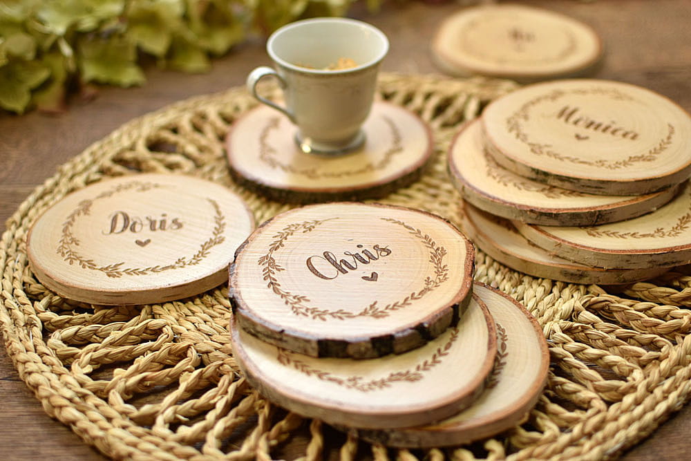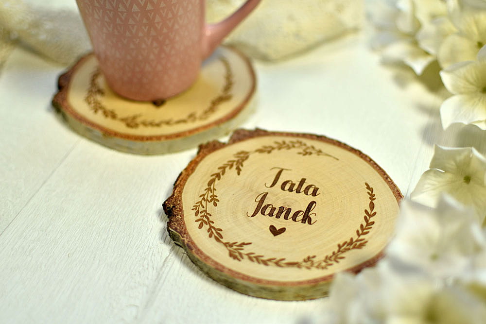 personalizowane podkładki pod kubek z drewna z dowolnym napisem