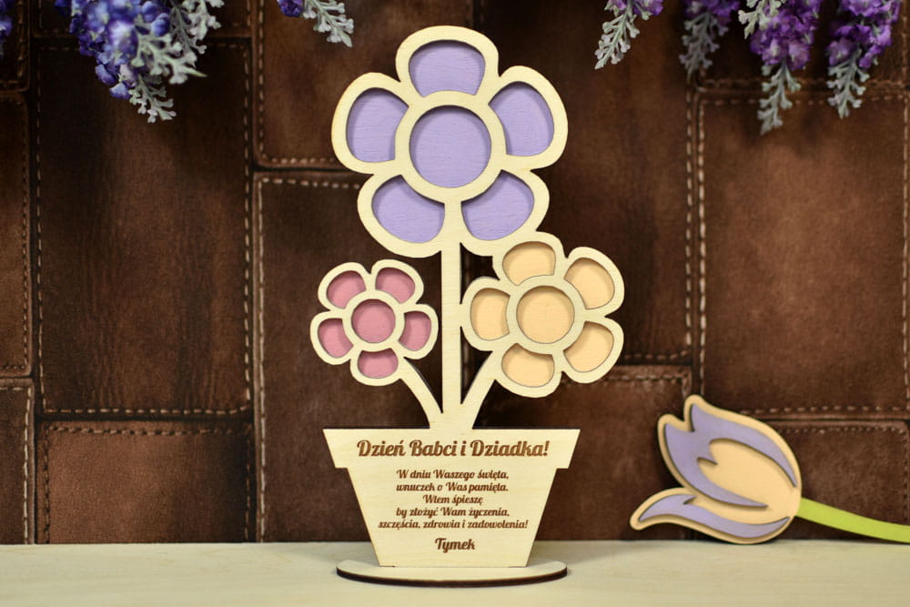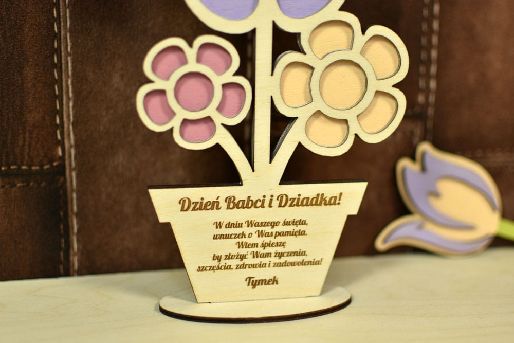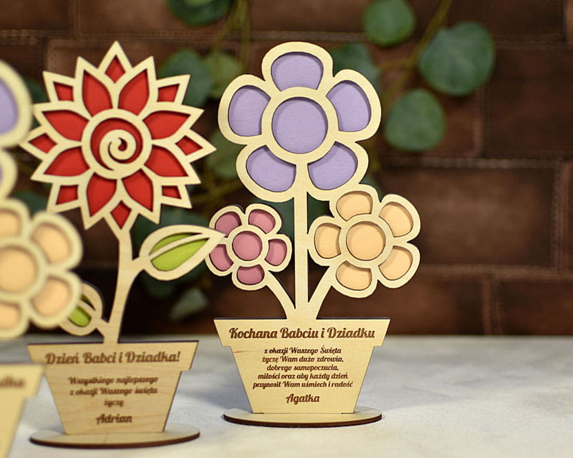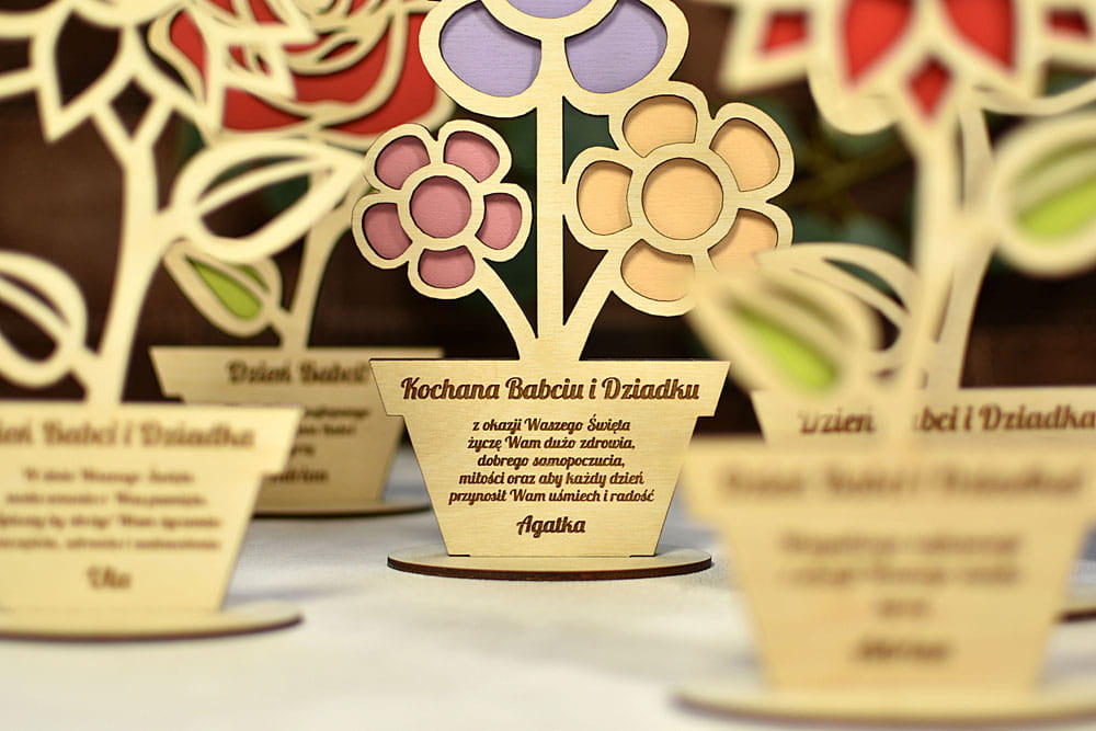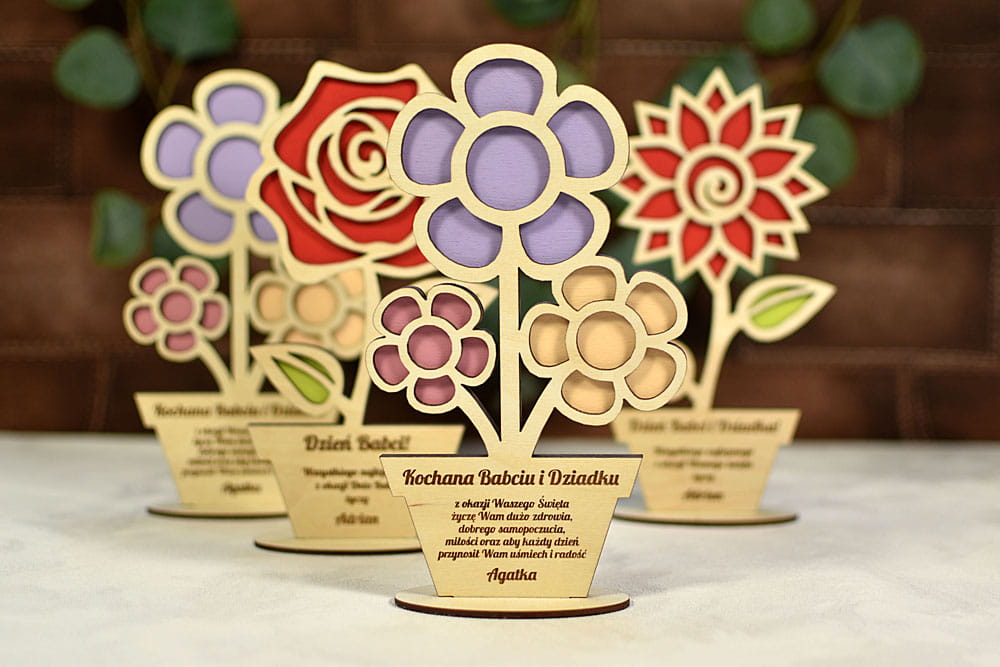 Zbliża się uroczystość, rocznica, a może inna ważna data dla Twoich bliskich? Podaruj im niecodzienny upominek z dedykacją - drewniane kwiatki z wygrawerowanymi życzeniami. Te kwiaty na pewno nie zwiędną i będą fajną pamiątką na długie lata. Wygrawerowane teksty można dowolnie modyfikować - dla Babci, dla Dziadka, a także dla mamy na Dzień Matki czy dla nauczyciela na Dzień Nauczyciela lub zakończenie roku szkolnego.