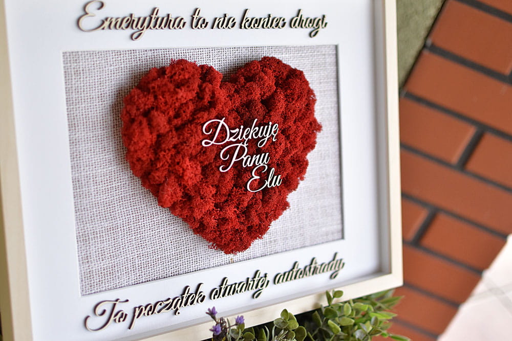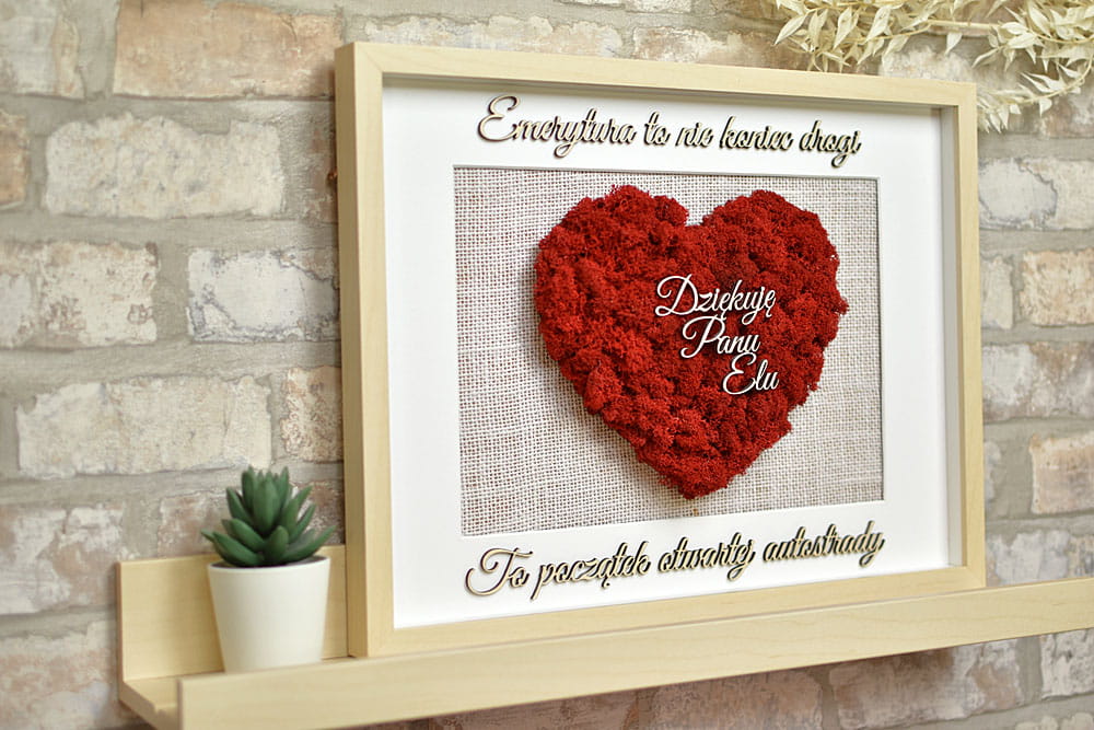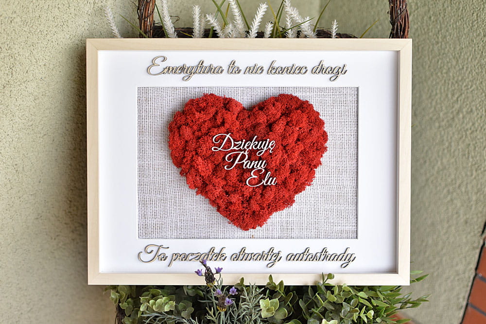Obraz będzie pięknym upominkiem dla szefa, kolegi czy koleżanki odchodzących z pracy. W zależności od napisu obraz będzie pamiątką dla współpracownika odchodzącego na emeryturę lub zmieniającego pracę. Jest możliwość zmiany napisu oraz umieszczenia np. w narożu ramki nazwy firmy.