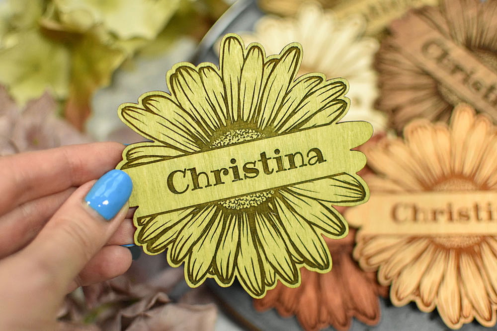 stokrotka - drewniana podstawka pod kubek z imieniem, winietka na stół
