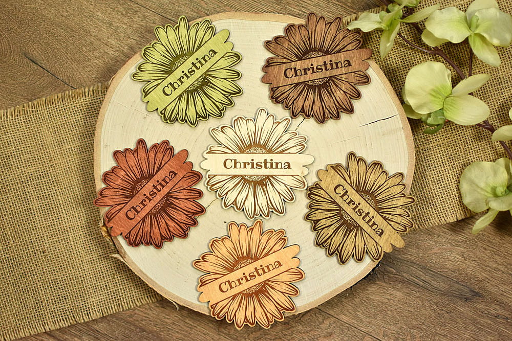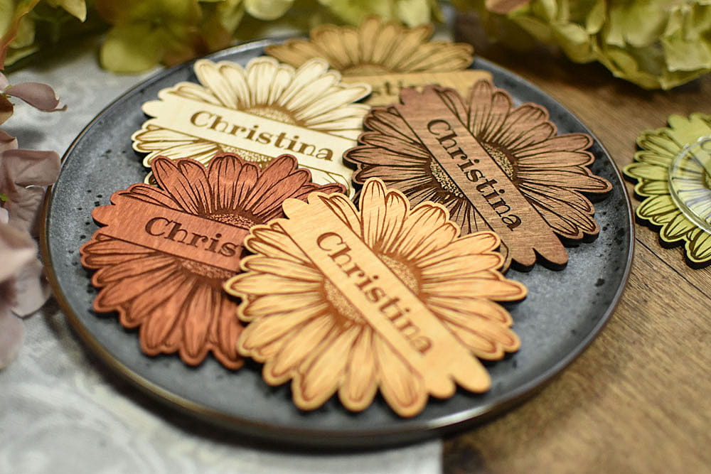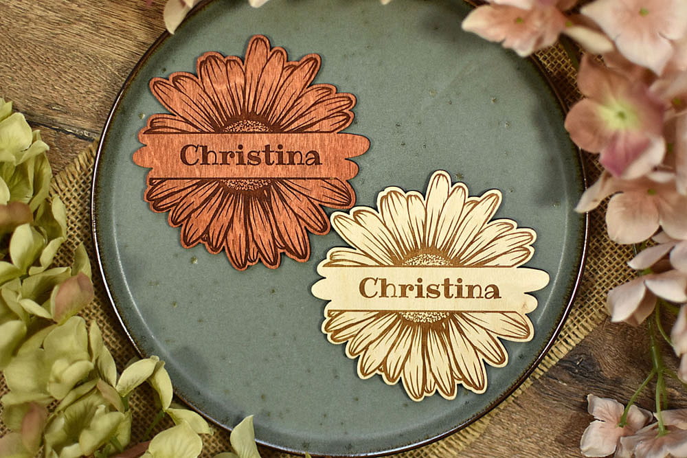 stokrotka - imienna drewniana podstawka pod kubek + prezent dla gości