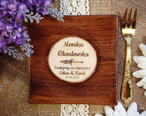 drewniana winietka z prezentem dla gości weselnych, rustykalne wesele WP6