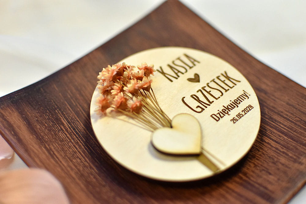 podziękowanie dla gości weselnych, magnes na lodówkę w stylu boho KOS3