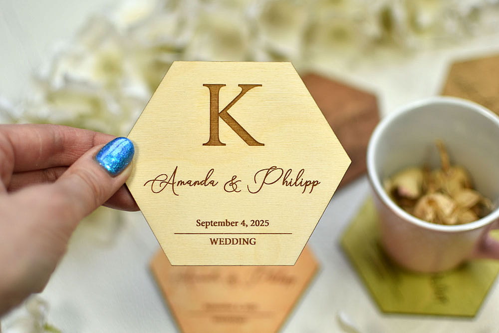 Oczaruj swoich gości wyjątkowym prezentem - personalizowaną podstawką pod filiżankę, kubek czy kieliszek. Na podstawce możesz umieścić dowolny tekst i dostosować ją do swojej uroczystości jak ślub, wesele, chrzest, komunia, jubileusz czy rocznica.