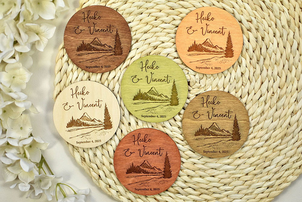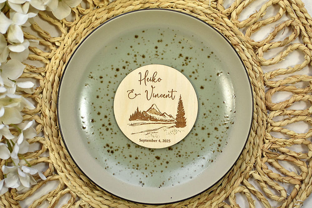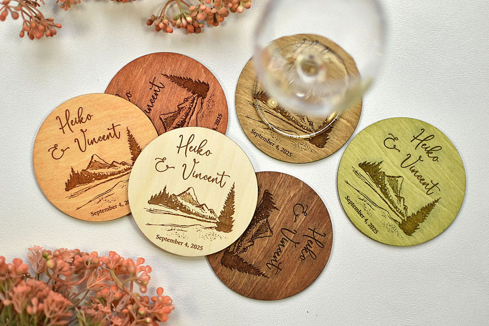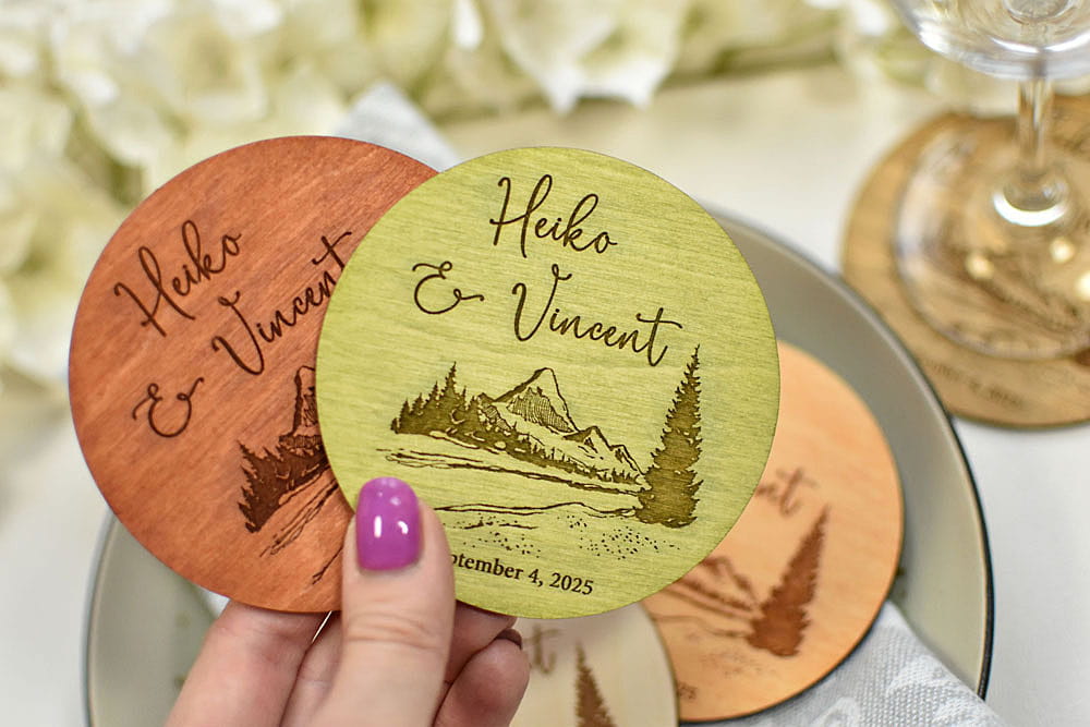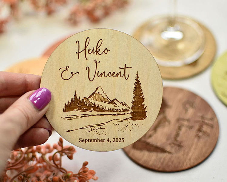 podziękowanie dla gości weselnych, podkładka pod kubek dla miłośników gór