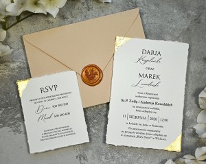 Pozostałe dodatki jak pieczęć lakowa, rwane krawędzie zaproszeń, złocenie krawędzi, sznurki, tasiemki itp. są dodatkowo płatne.
