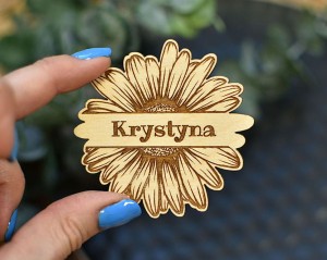 stokrotka - drewniana wizytówka na stół z imieniem gościa