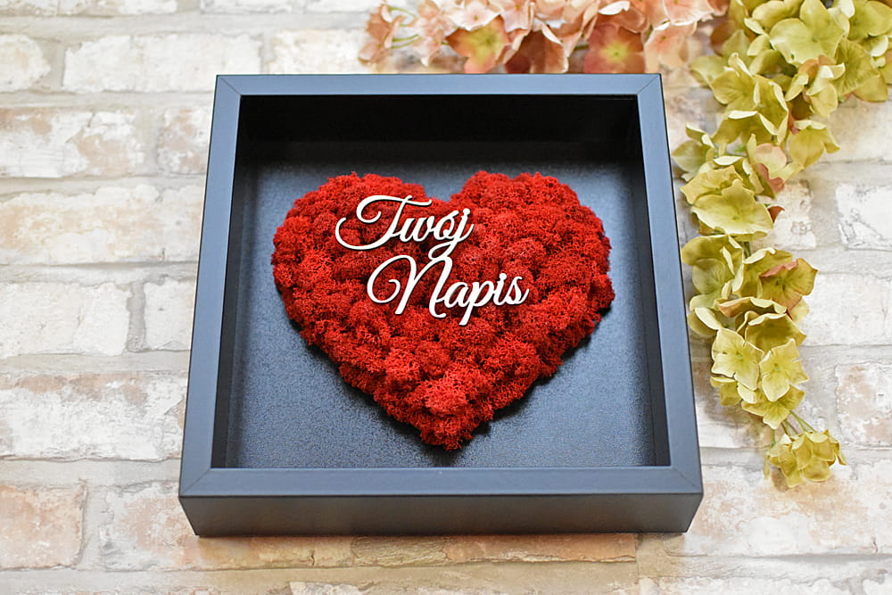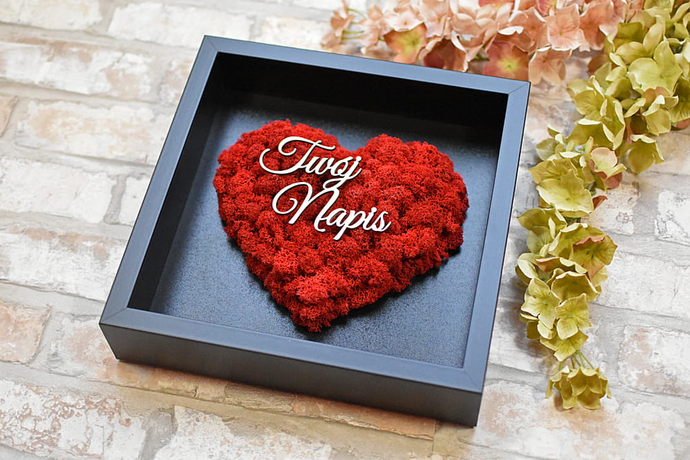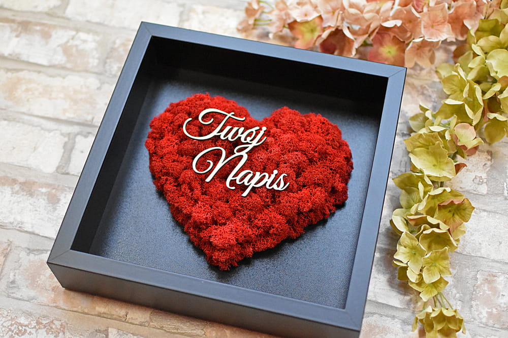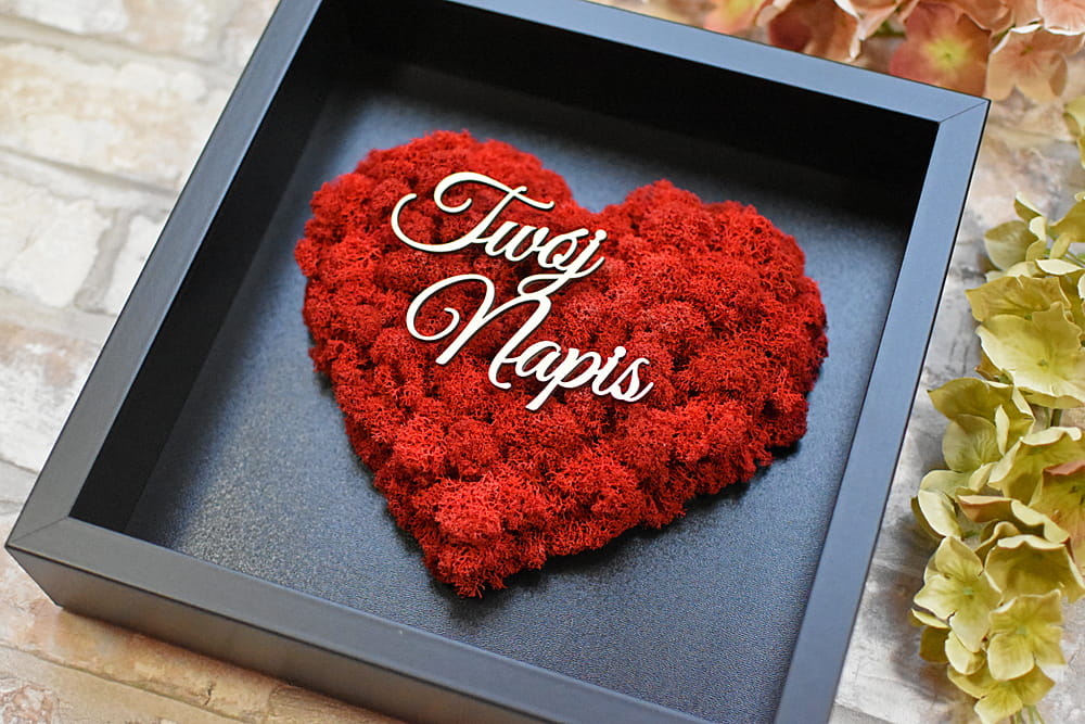 Twój napis prezent dla Rodziców serce z mchu czarna ramka