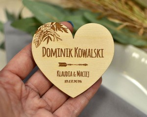 podziękowanie dla gości weselnych + drewniana winietka serce z magnesem WPS1