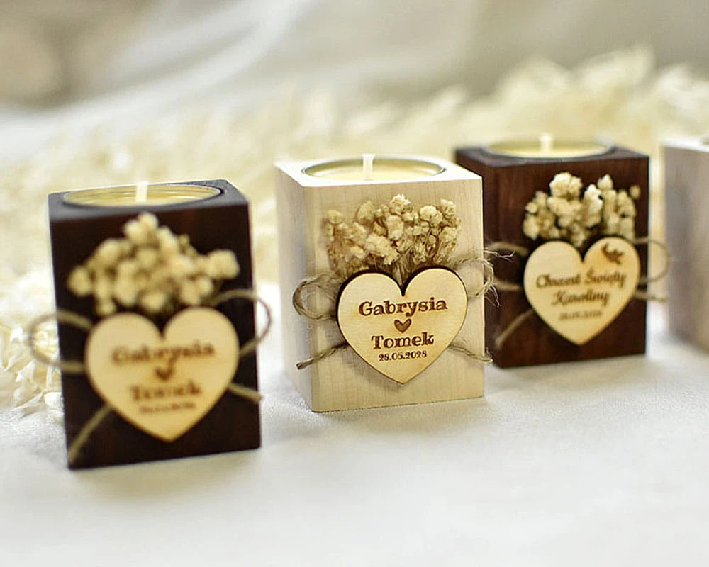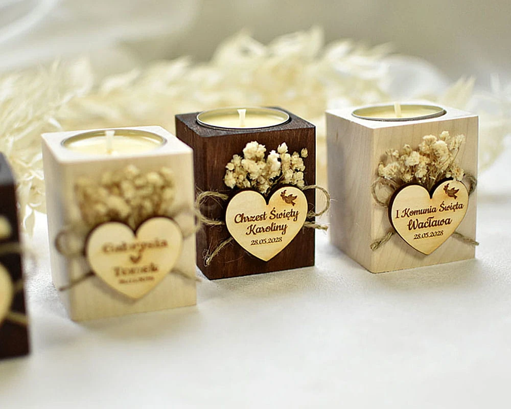 Więcej wzorów pamiątkowych świeczników znajdziesz tutaj: drewniane świeczniki podziękowania dla gości
