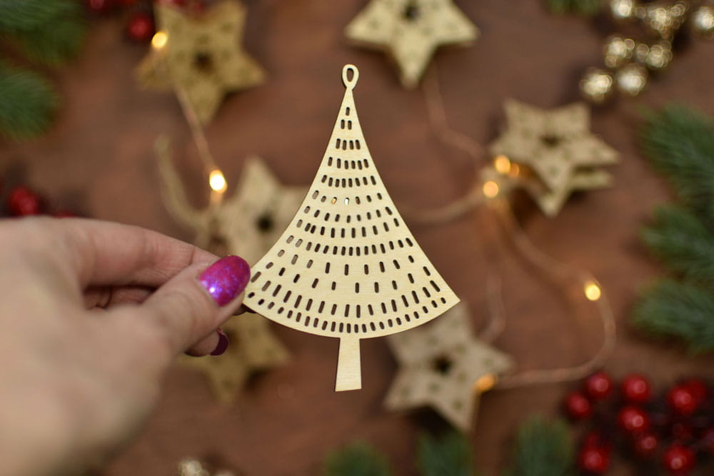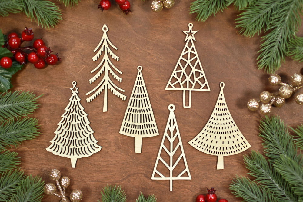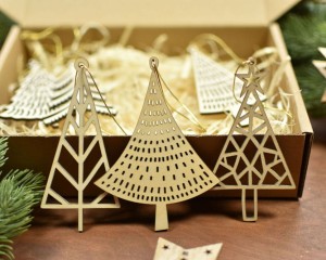 Oryginalne dekoracje świąteczne - zestaw 6 szt. zawieszek/bombek w kształcie choinek. Zapakowane w ekologiczne pudełko zawieszki będą pięknym prezentem dla Waszych bliskich.