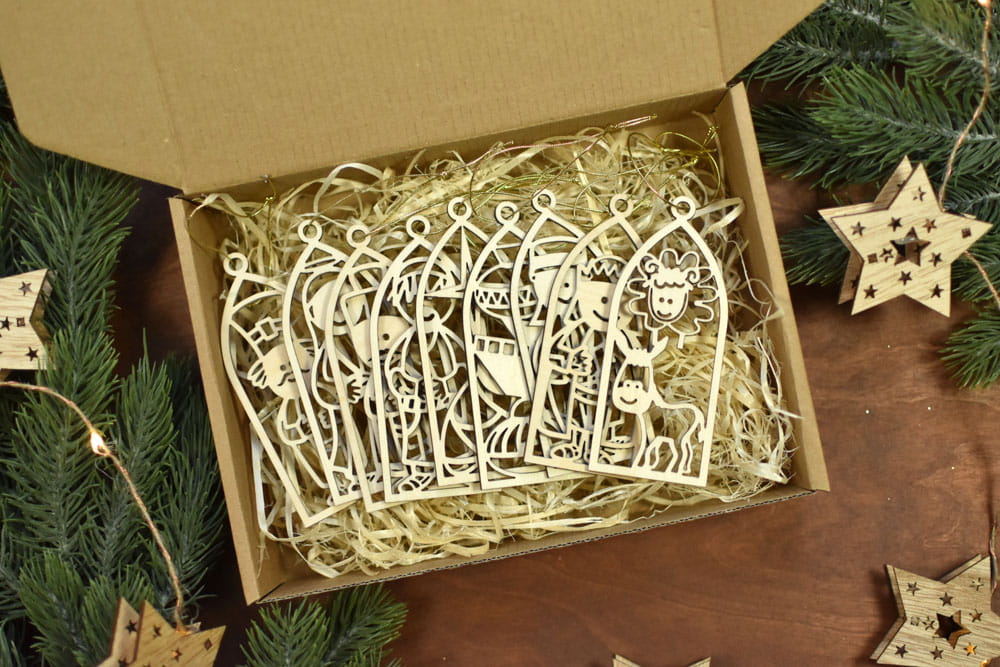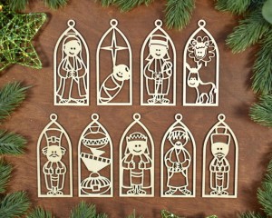 Dla osób szukających ozdób o charakterze religijnym - zestaw 9 szt. zawieszek/bombek z motywem Szopki Betlejemskiej. Zapakowane w ekologiczne pudełko zawieszki będą pięknym prezentem dla Waszych bliskich.